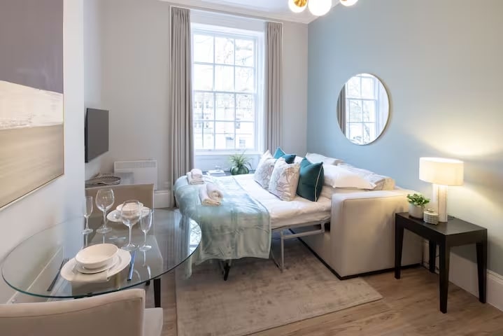 We are delighted to offer a stylish one-bedroom apartment in a Georgian townhouse conversion. This spacious retreat features soaring ceilings and abundant natural light, creating a bright and airy atmosphere. Thoughtfully designed, it offers a blend of modern comfort and historic charm. Tucked away in a leafy square on the edge of Bristol’s city centre, it’s just a short stroll from vibrant cafes, trendy bars, and top-rated restaurants - the perfect base for a comfortable and memorable stay.