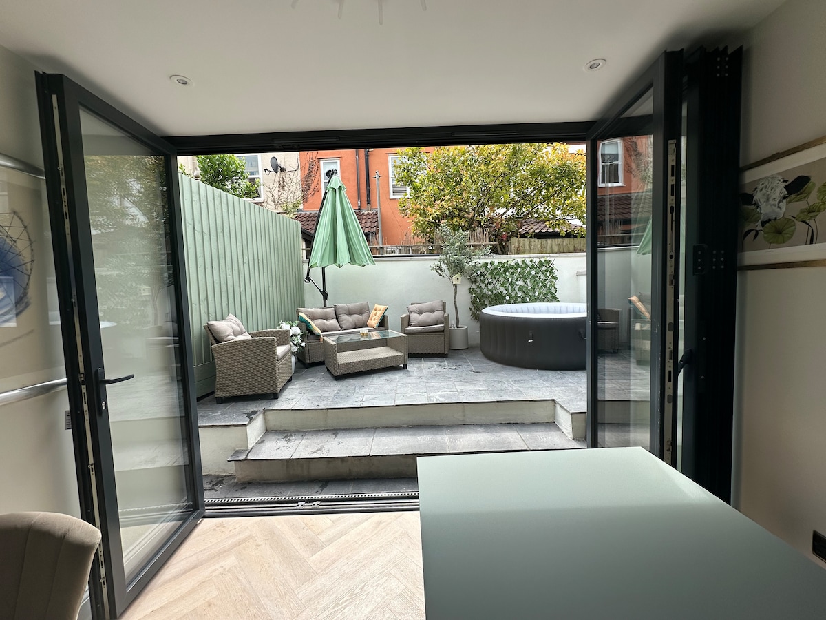 Olli's cottage is situated in one of Bristol picturesque suburds, newly refurbished 700sq Ft/70 Sqm with private terrace and hot tub (3 days notice required/small extra charge). In close proximity to La Villa Olli: Swimming pool with waterfall, pool table & ping pong table (Small extra charge). Located near M4/M5, making travel to/from easy. Perfect for a couple getaway or a business trip in a tranquil environment within 5 minutes access to country pubs.