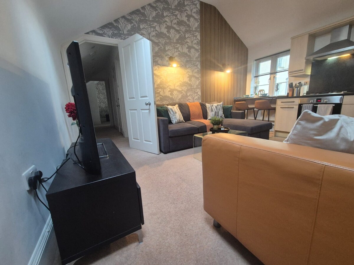 Fabulous newly refurbished 1-bed apartment in a beautiful Grade II listed building in the heart of Tetbury. Modern, clean and stylish, it features a king bed, fully stocked kitchen, and bathroom with shower over bath. Quietly set at the back off the High Street, yet steps from shops, pubs, and cafes. Free parking a short walk away. Secure entry, fast WiFi, smart TV, and thoughtful extras provided. Travel cot and highchair available, making it perfect for couples, solo guests, or young families.