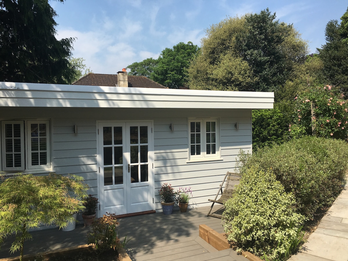 A unique guest cottage located in a tranquil garden in Central Bath with private access. It's finished to a high spec and has both en-suite bathroom and well equipped kitchenette as well as high-speed broadband, high quality bed linen, desk and ample clothes storage. There is off street car parking included. We are based in central Bath with the Roman Baths, Bath Abbey and the city centre only a 10 minutes walk away. Please note that it is STEPS ONLY access to the property.