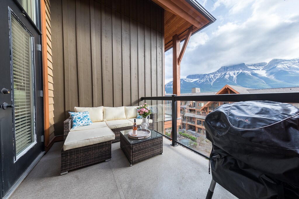 Welcome to what we like to call the world's most scenic rocky mountains. We look forward to hosting you with the following: • Complete kitchen w/ Coffee Machine • 1 Queen bed & 1 Queen sofa bed with linens. • Sleeps 4 • Smart Tv with Streaming options • 2 Hot Tub accesses • Private BBQ on the patio • Onsite Cardio Room • Restaurant - Vietnamese on site • 24-hr on-site security • 10 min drive to Banff