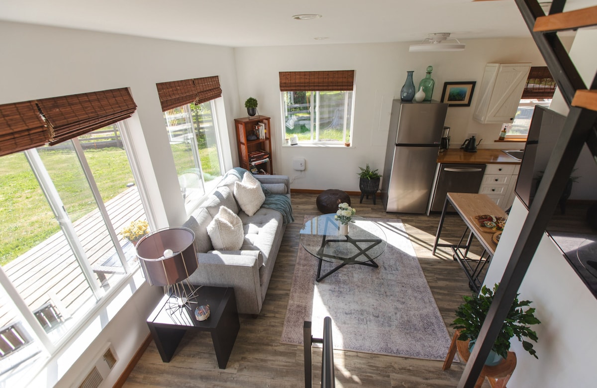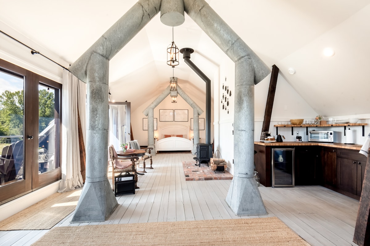 Welcome to Barnyard B&B! This memorable little place is anything but ordinary. Perched above a quaint barnyard, you are in for a treat! Watch the daily antics of the barnyard animals and settle in for a "small-home" retreat. Built in 2022, this unique carriage house loft is designed with tiny luxury & rustic romance, log features, fireplace, hot tub, high-end furnishings, built for Two. 🌻 Need more space? If you have a family, consider adding our rental tent or camper to your booking.