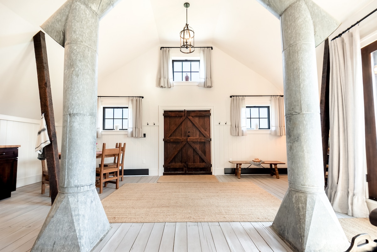 Welcome to Barnyard B&B! This memorable little place is anything but ordinary. Perched above a quaint barnyard, you are in for a treat! Watch the daily antics of the barnyard animals and settle in for a "small-home" retreat. Built in 2022, this unique carriage house loft is designed with tiny luxury & rustic romance, log features, fireplace, hot tub, high-end furnishings, built for Two. 🌻 Need more space? If you have a family, consider adding our rental tent or camper to your booking.