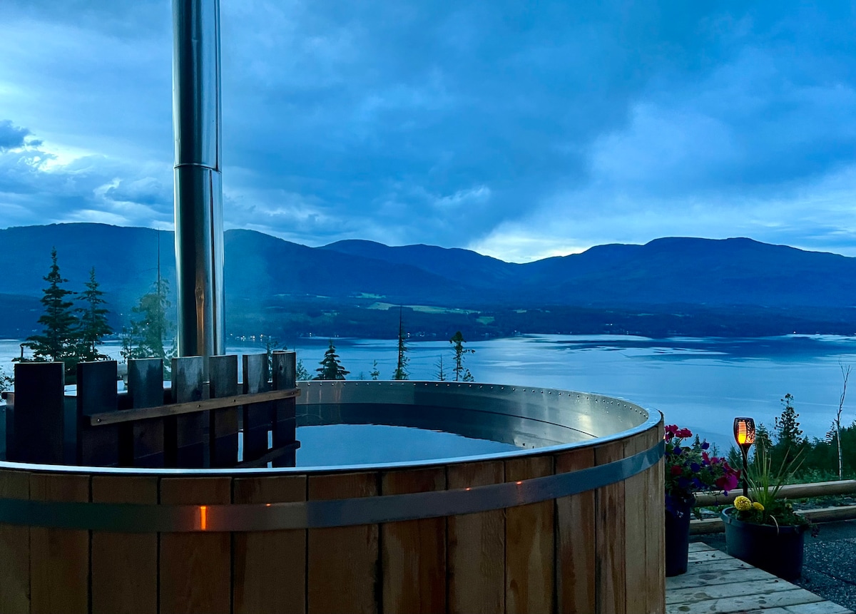 A nature retreat, where you can soak beneath the stars in PRIVATE HOT TUB, year-round, rain, snow, or sun! A covered deck with cozy furniture. Wrap up in a blanket and sit by propane fire table, sipping from gold rimmed glasses. Fully stocked kitchen! Wander mossy riverside trail where you won’t see anyone. Beautiful tiny home, wooden swings hang by thick hemp rope at your own outdoor breakfast bar. Hike to a lake from here, go fishing, ski Whistler. Drift off to sleep in luxury linens.
