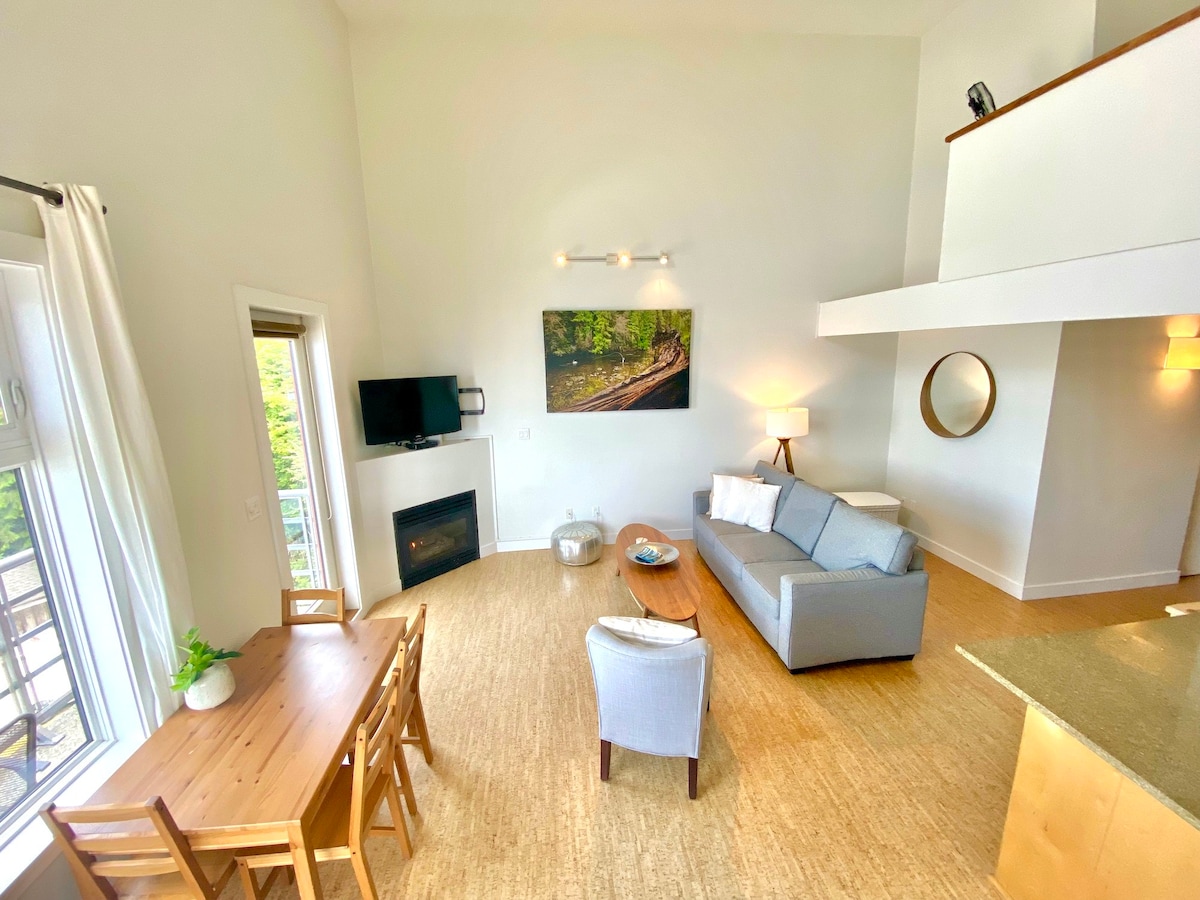 **HOT TUB CLOSED from Nov to late February 2026 for renovations** The Main Street loft is centrally located on Main Street in the Marketplace area of Whistler Village North. Newly renovated loft space with high ceilings and patio with mountain views! FREE PARKING, HOT TUB + bike storage. The loft is located on 3rd floor of a mixed commercial/residential building. It's near grocery store, coffee shop, restaurants, bars, liquor store & shops. 7-10 min walk to gondola & 1 min to Olympic Plaza.