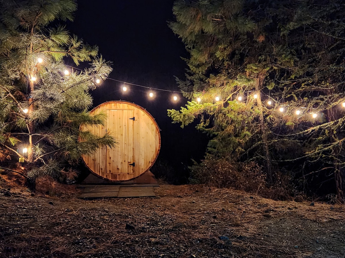 A relaxing retreat for couples, solos or business travelers. Above ground, private entry, self check in. Free parking. King bed, in suite laundry, Fast WIFI. Fully stocked kitchen- coffee, light grab and go breakfast included. Melt in the barrel sauna, then relax on a secluded, year-round sheltered patio with a fire table, cozy seating and barbeque all in a quiet, fenced back yard. 5 minutes from Highway 1, 10 minutes to downtown, 55 minutes to Sun Peaks. The perfect base for your next getaway.
