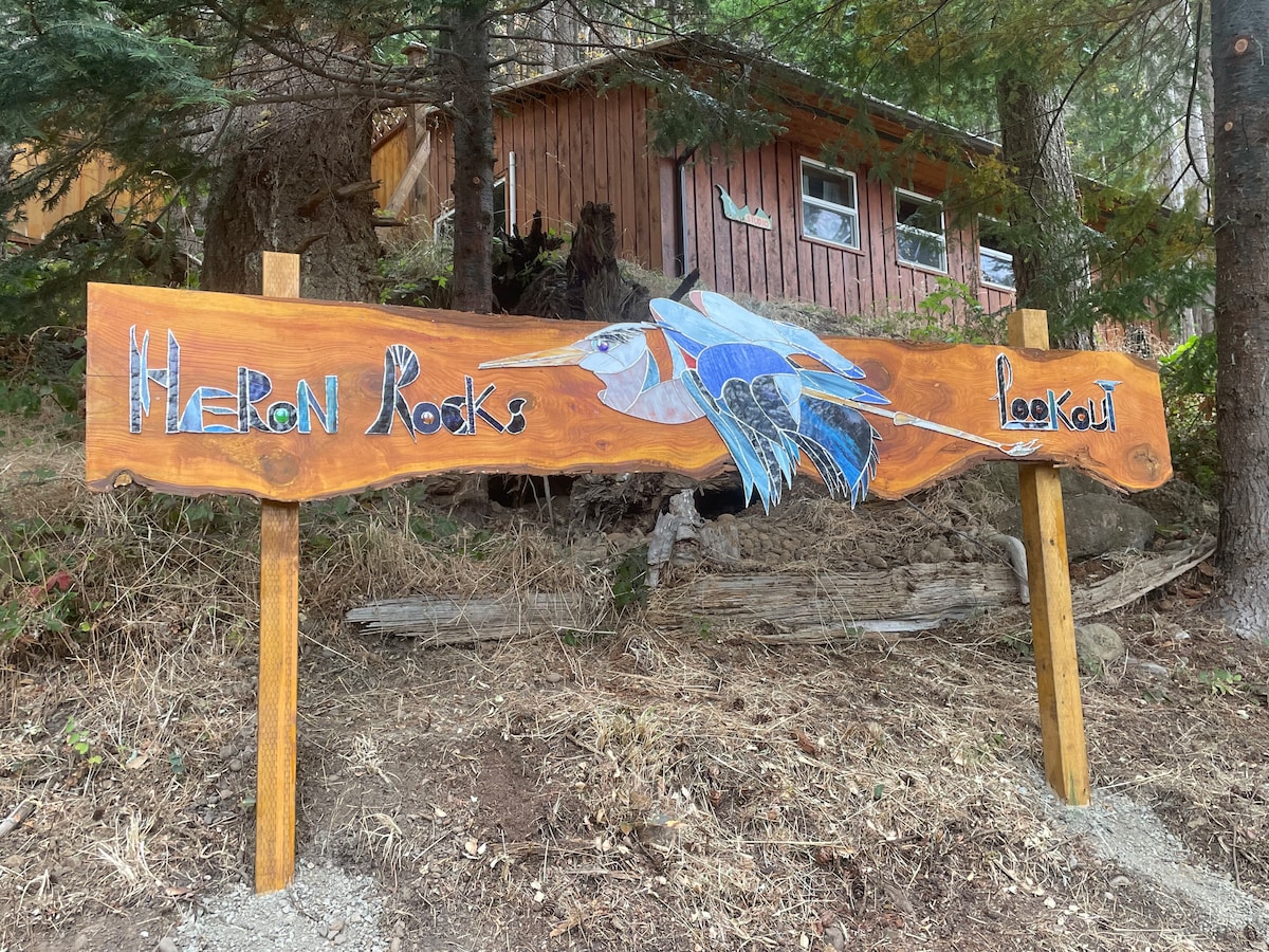 Nestled beside a gentle brook in a sheltered cove, enjoy the solitude of this unique and quiet waterfront A-Frame house. Close to parks and just 15 minutes to Sooke, 45 minutes to Victoria. Relax on the large wraparound deck or rest by a crackling fire in the massive stone fireplace. Boat or seaplane moorage at the private dock. All three bedrooms have finest bed linens and modern bathroom amenities. Full kitchen. Adventurous? Climb the dragon's back to sleep in the top floor hideaway!
