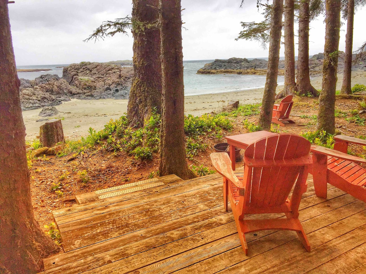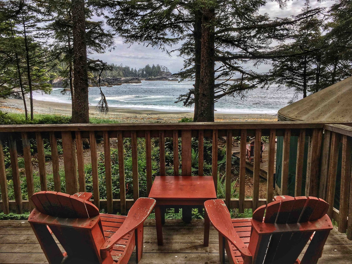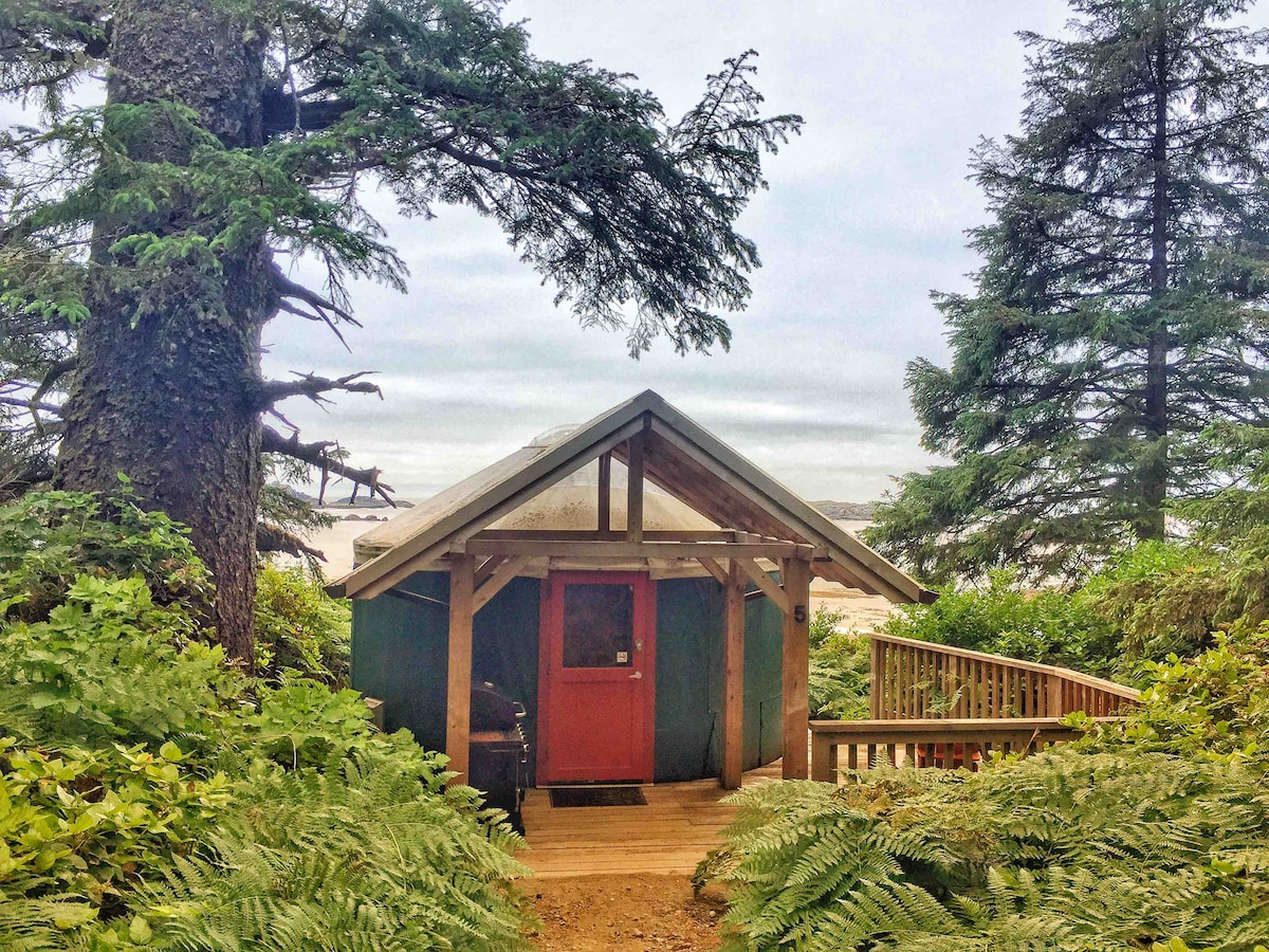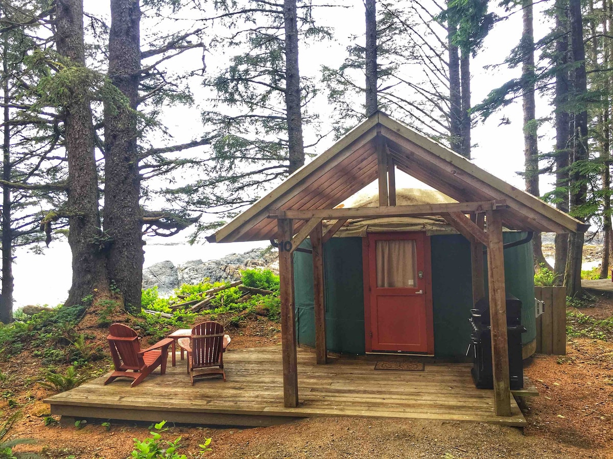 This luxurious oceanfront yurt is hidden in an ancient cedar grove providing privacy and an amazing backdrop to its unprecedented ocean front setting. Set atop an ocean front rock face with a fully covered patio. A fully equipped kitchen and spa like bathroom highlight the luxurious amenities included in this stay. An upscale romantic getaway like no other. Breakfast provided, our guests receive coffee, teas, and light breakfast fare.
