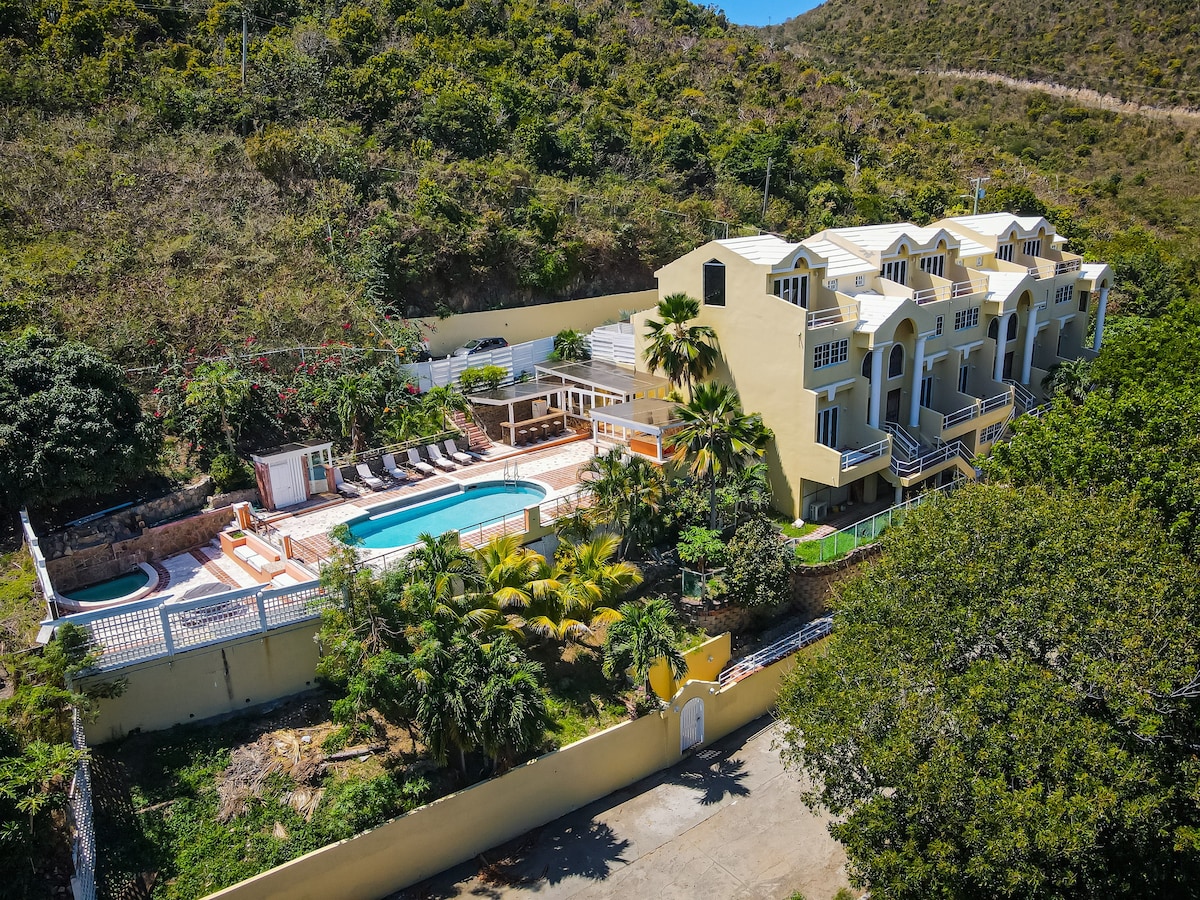 "Location, location, location!" This rustic yet charming guest studio is nestled on a hillside above one of the most sought-after and beautiful resorts in the Virgin Islands. Just a two-minute walk to Long Bay Beach and Resort, which offers an amazing spa, beach bar and restaurant. This guest studio is perfect for a couple or a family of three. Hosts have lived in the BVI for 30 years and love to share local insights.