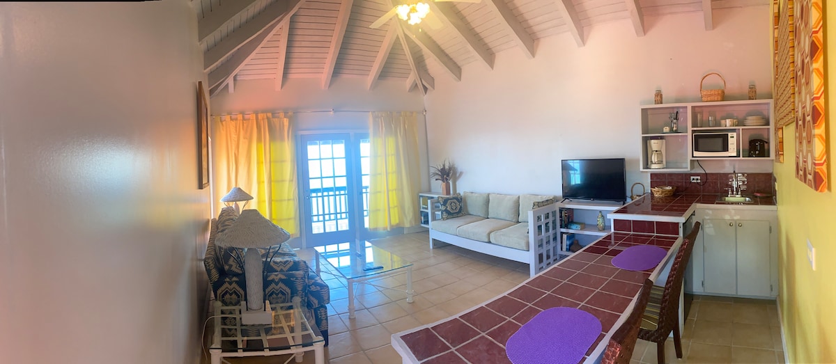 Welcome to Sebastian’s on the Beach, a boutique hotel on the crystal clear waters of Little Apple Bay. This Junior Suite King with Kitchen sleeps 4 and includes 2 beds, a private bath, and a full kitchen for meals at home. Wake to ocean views, enjoy days on the beach, and end with colorful Caribbean sunsets just outside your door!