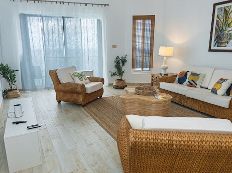 Odyssea Oasis “the Playhouse” (1 Bedroom, 1 Bathroom, Rooftop Entertainment, and Outdoor Kitchen) Discover the Odyssea Oasis "the Playhouse", a charming addition to our villa collection. This one-bedroom retreat is perfect for those seeking intimacy and luxury, featuring a fully equipped kitchen, spacious living area with a large flat-screen TV, and direct access to an enchanting outdoor lawn.