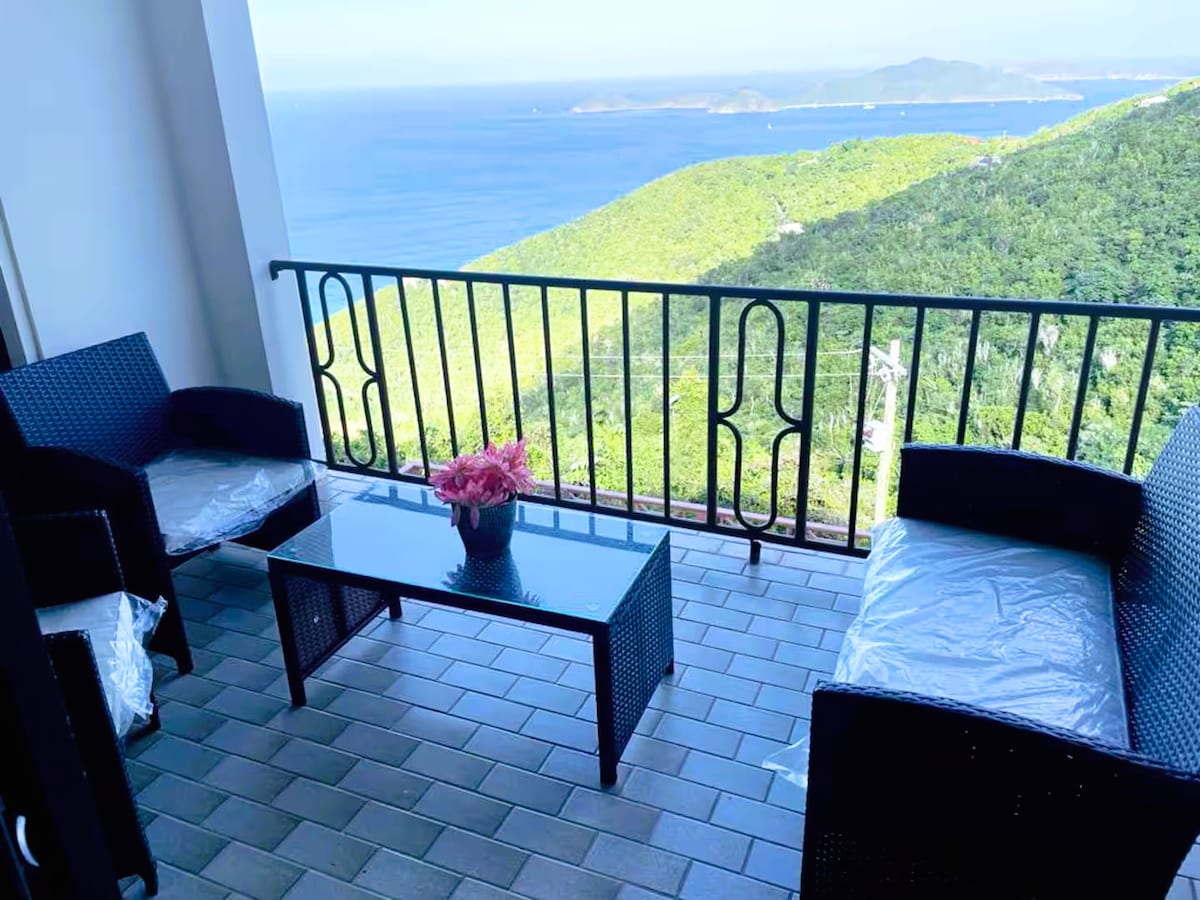 阳光明媚的私人干净海景公寓,带泳池!