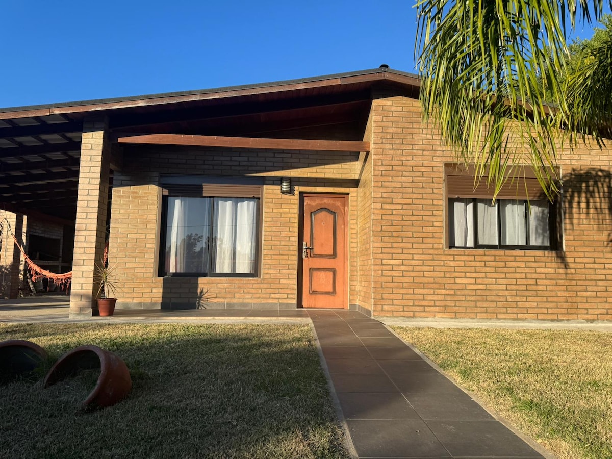 Es una casa que esta en una estancia, con un contorno natural y salvaje, pero con un espacio cuidado, hermoso para sentarse cerca del Ceibo a leer y disfrutar del Sol y los pajaritos. La zona esta cuidada, y tiene bajada de bote o kayac. Se puede nadar en el rio, pero es recomendable usar flotador. Es el lugar ideal para pasar una cuarentena o unos días desconectado de la city.