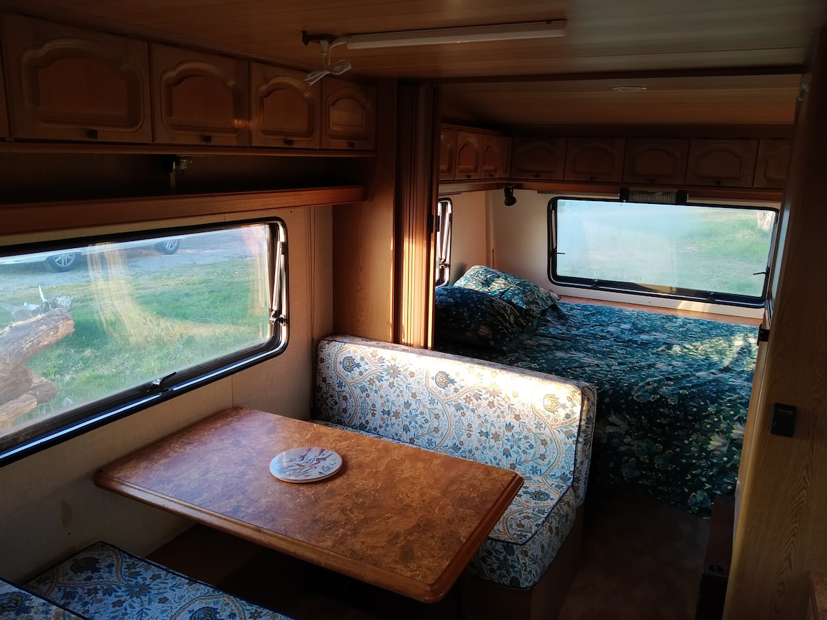 À la fois simple et sophistiquée, moderne et vintage, notre Karravane est un modèle UNIQUE. Vous n’en verrez pas deux comme elle ! Un aménagement fonctionnel et sobre, à l’esprit seventies qui rappelle l’âge de sa carcasse bien conservée. Le temps d’un week-end à deux hors-saison ou pour un break plus long en été, vous tomberez forcément sous le charme de cette « vieille » caravane et de son concept décalé.