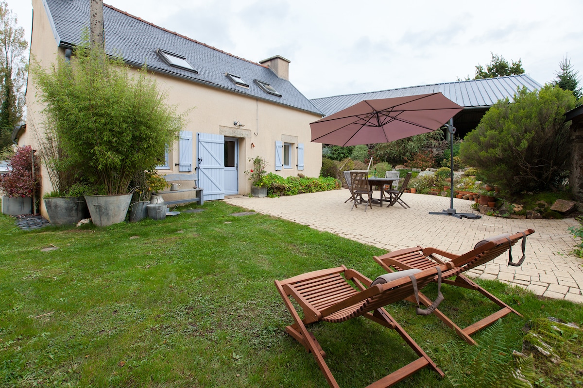 Maison au calme, idéale pour l'accueil de familles (5 p), indépendante, grande terrasse et jardin privatifs. Nous contacter pour la location de la 3ème chambre, accès par l'extérieur avec WC et baignoire cf photos. 40€ la nuitée. Située à 13 km de l’Océan, location idéale pour visiter le Finistère du Nord au Sud, d'Ouest en Est. Au bout du Monde ! le Menez Hom (330 m) à 5 mn, offre une vision à 360 degrés et donne un avant goût de tout ce qui vous attend ! Vie culturelle riche et intense...