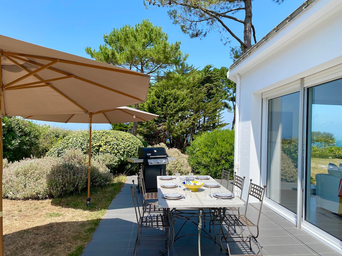 Maison contemporaine, vue exceptionnelle et unique sur la mer, les îles de Port Blanc, la baie de Pellinec, les 7 îles au large de Perros Guirec. Située près du petit port de Buguéles, à quelques minutes à pied des premières plages et à 2,5km du bourg de Penvenan, avec tous ses commerces, son marché et son supermarché. La maison est composée d'une grande pièce de vie de 50m2, 3 chambres, 3 salles de bains, 2 toilettes, 3 terrasses, un jaccuzzi. Nos amis les animaux ne sont pas admis.