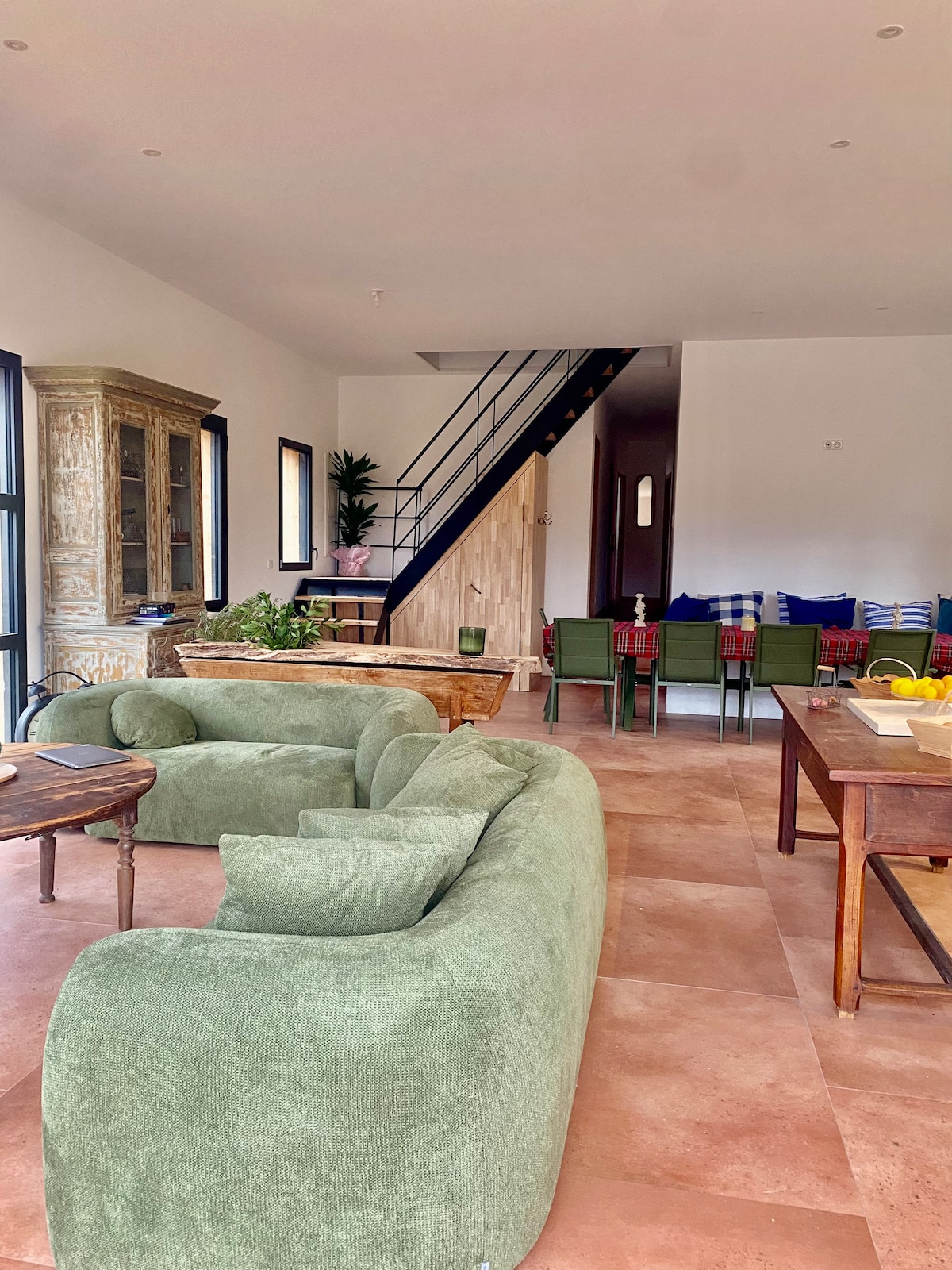Découvrez le Gîte Jean Montet, un appartement de 65 m² situé à l’étage, idéal pour 5 personnes. Deux chambres (1 lit queen size, 3 lits simples), séjour lumineux avec cuisine équipée, salle d’eau moderne avec douche à l’italienne et double vasque, Wi-Fi et TV. Coin repas extérieur privatif avec pergola et barbecue. Profitez de la piscine chauffée partagée en été, d’une grande salle de jeux, d’animaux de la ferme et de jolis sentiers de promenade.