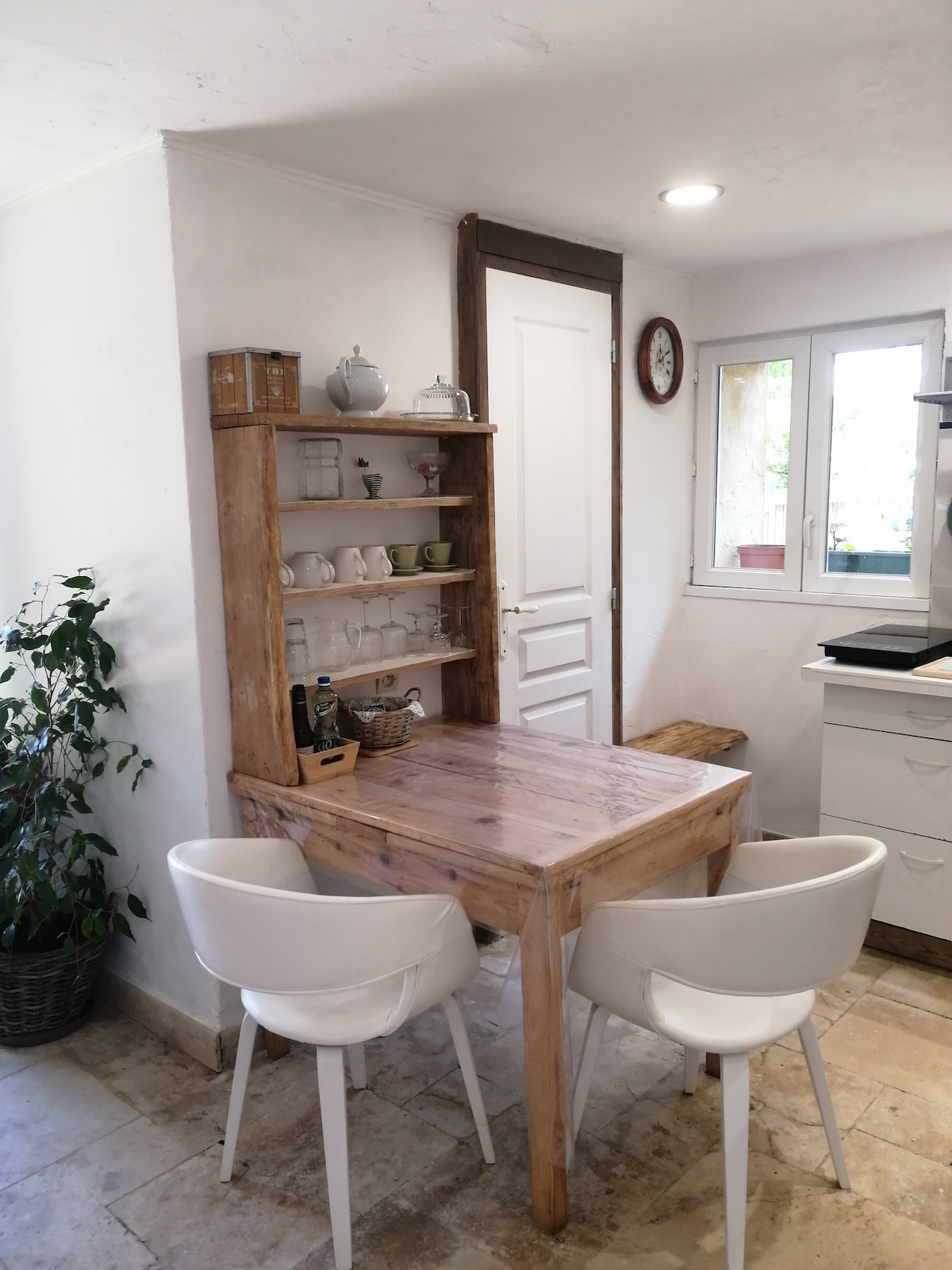 Apt semi indépendant Plain Pied 48m2, résidence sécurisée, piscine , 1,5km du centre historique. Terrasse couverte : table, 4 chaises, 2 transats. Gde pièce à vivre, cuisine équipée micro-ondes, four électrique, plaques vitro-céramique, frigo, congel, lave-vaisselle, TV. Salon canapé convertible 2 pers en 160, sdb : lavabo, baignoire, douche, lave-linge. Chbre lit 160, chevets, gd placard. Environnement calme et verdoyant. Draps fournis. Linge de toilette sup 15€. PISCINE FERMEE LE 30 SEPTEMBRE.