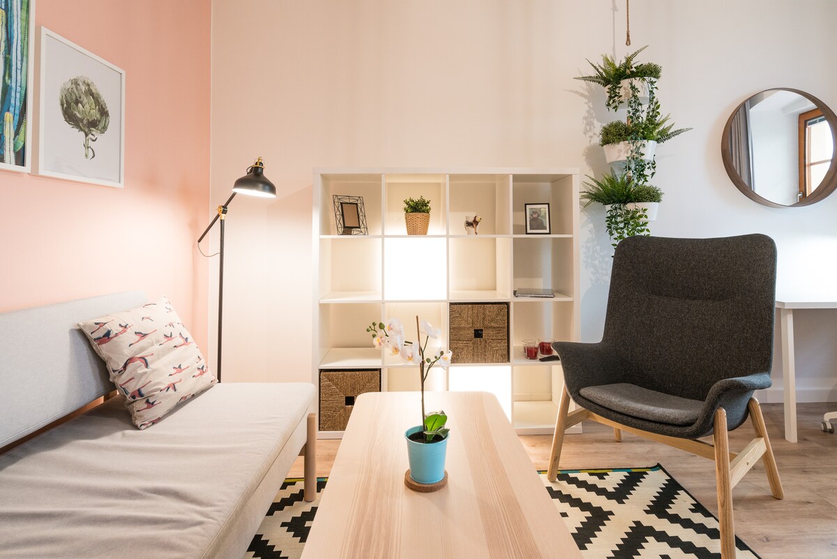 This cozy 50 m² apartment is located on the second floor of a building without an elevator. With windows facing a quiet courtyard, it offers a pleasant and peaceful environment. One bedroom layout includes a comfortable living area with a double bed measuring 180x200 cm. The apartment is equipped with a shower, a fully equipped kitchen, a comfortable sofa, and a work desk, making it an ideal choice for longer stays and business trips.