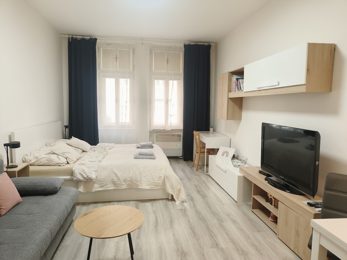Dear guests, this cosy and clean apartment is located in heart of Brno. Apartment is facing inner side of building, so it's very quiet and safe. Inside you can find everything you need for your stay. Things like fast wifi internet, Apple TV, queen size bed, bathroom with shower and bathtub and more. Kitchenette is equipped with fridge and freezer, oven, cooker, Kettle and other necessities. Thanks to its location everything is within walking distance. This place is great for all travellers!