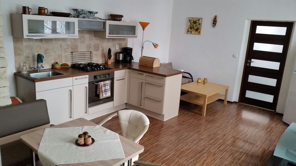 Vítejte v našem apartmánů s vybavenou kuchyní, pracovním koutem a obývacím prostorem. Plně vybavený apartmán je ideálním místem pro pár či kamarády, kteří hledají klidné místo pro svůj pobyt v Brně. Do centra je to pouhých 10 minut cesty autem nebo 15 minut cesty městskou dopravou.