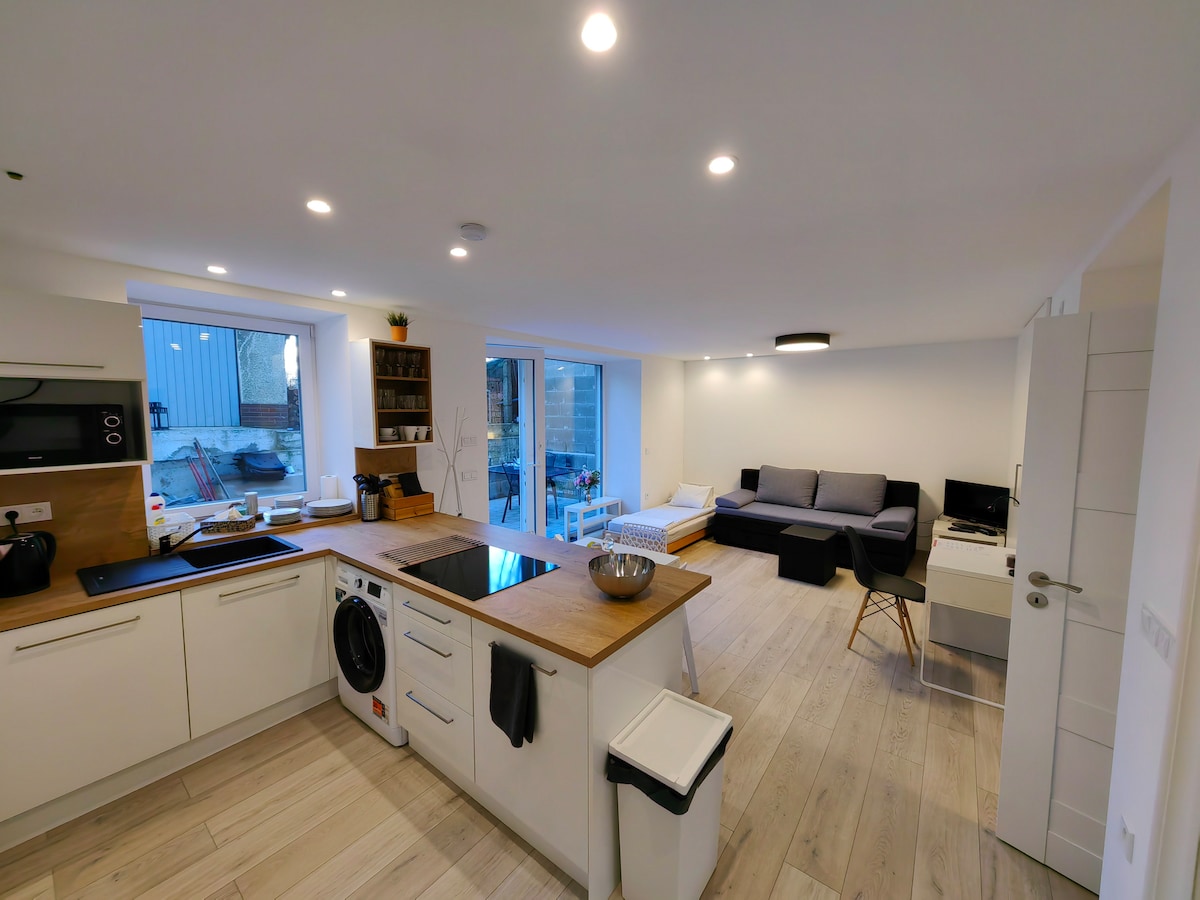 靠近市中心的带露台公寓,免费停车位