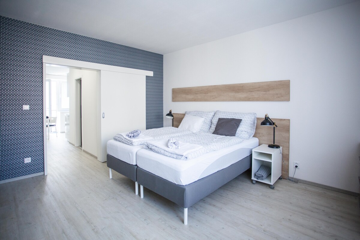 Although you left the city center just fifteen minutes ago, you can now enjoy the tranquility of a small apartment near the Svratka River. The nearby cycle paths, the beauties of Cacovický Island, well-equipped playgrounds, and great pubs around the corner provide a peaceful environment where you can relax and plan the next day.