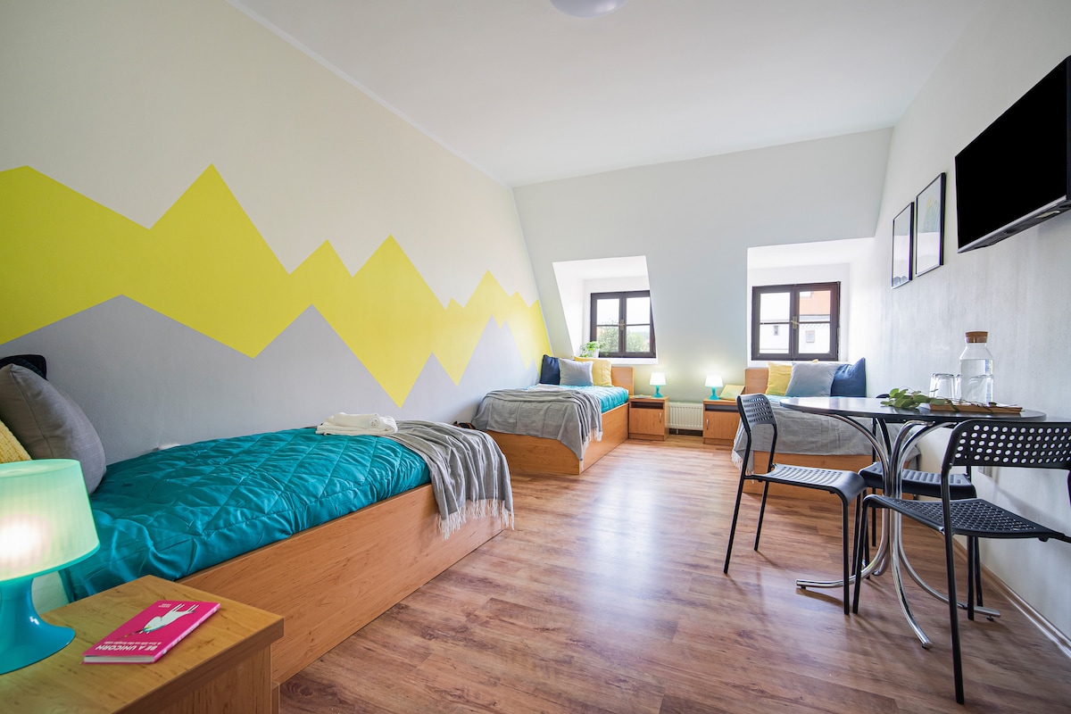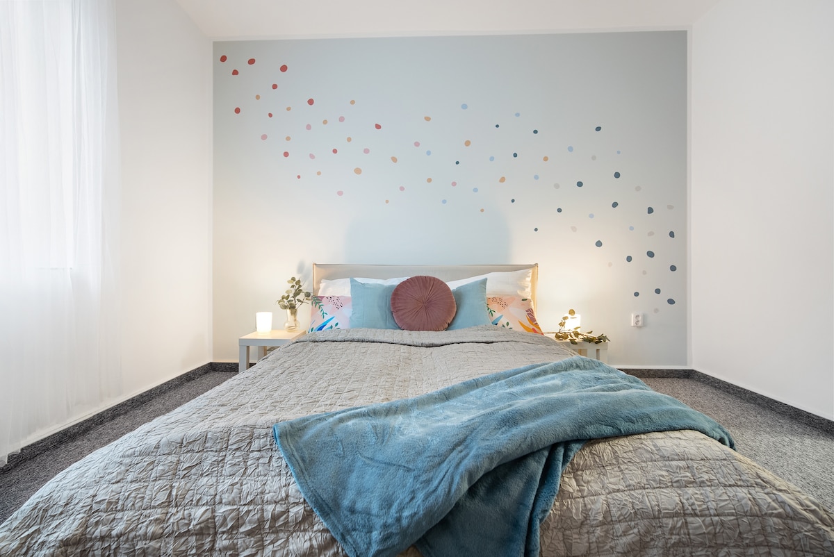 Apartmá Moderna IV - prostorný ráj pro rodiny v centru Brna Cestujete do Brna s rodinou nebo přáteli? Pak je apartmán Gabriela to pravé pro vás! Nabízíme luxusní ubytování až pro 4 osoby v srdci historického centra města. Užijte si kombinaci pohodlí velkometrážního bytu a prémiových služeb v duchu boutique hotelu. Děti i dospělí ocení originální design, moderní vybavení i skvělou dostupnost všech brněnských atrakcí a zážitků.