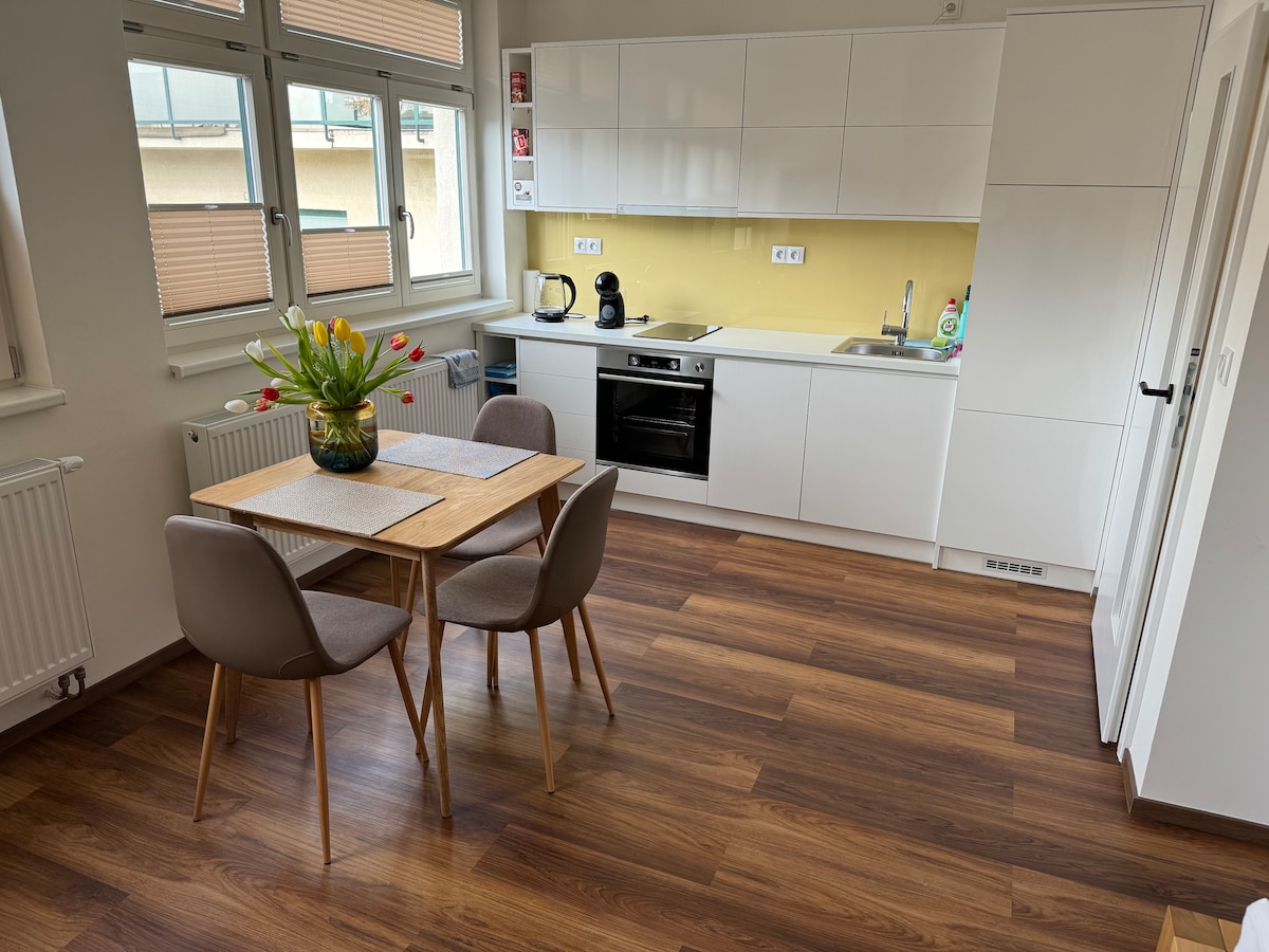 布尔诺市中心舒适的新公寓,配有空调。