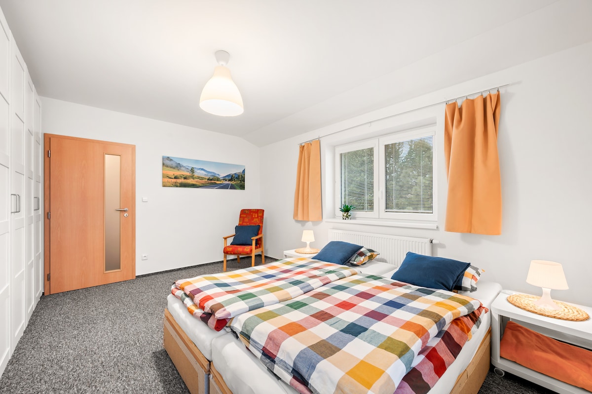 The new air-conditioned attic apartment features a double bed and a sofa bed that provides two additional sleeping areas. Includes a fitted kitchen, bathroom with shower, washing machine, hairdryer and iron. The whole apartment is covered with high-speed wifi. Cable TV is available, including HBO. Nearby is the restaurant Svatoboj, food, a popular cycle path with beautiful nature and one of the best wellness in Brno - 4comfort. We offer self-check-in!
