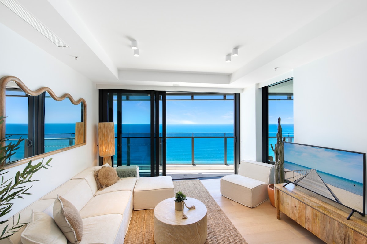 Our simply gorgeous two-bedroom, two-bathroom family-sized apartment is located high up on level 32 in Oracle Tower 2. The breathtaking views from our large ocean-facing balcony are simply stunning! Oracle is nestled in the heart of beautiful Broadbeach, with all the best beaches, parks, shops, cafes, and restaurants just a stone’s throw away. Our stylish apartment offers a completely relaxing and dreamy beachside holiday. We can’t wait to welcome you to our slice of paradise in Broadbeach.