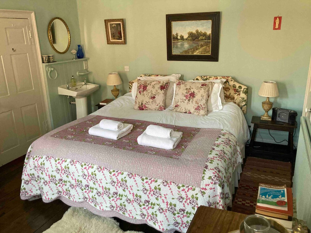 A spacious double room in a large period house with extensive garden. Halesworth is only a 20-minute walk away (less than 5 by car). Southwold, Walberswick, Aldeburgh and Snape are all within a short drive. Latitude Festival buses stop outside the house. I can make you full English or continental breakfast at a competitive rate. Tea and coffee in room. Dogs very welcome but are owners' responsibility at all times.