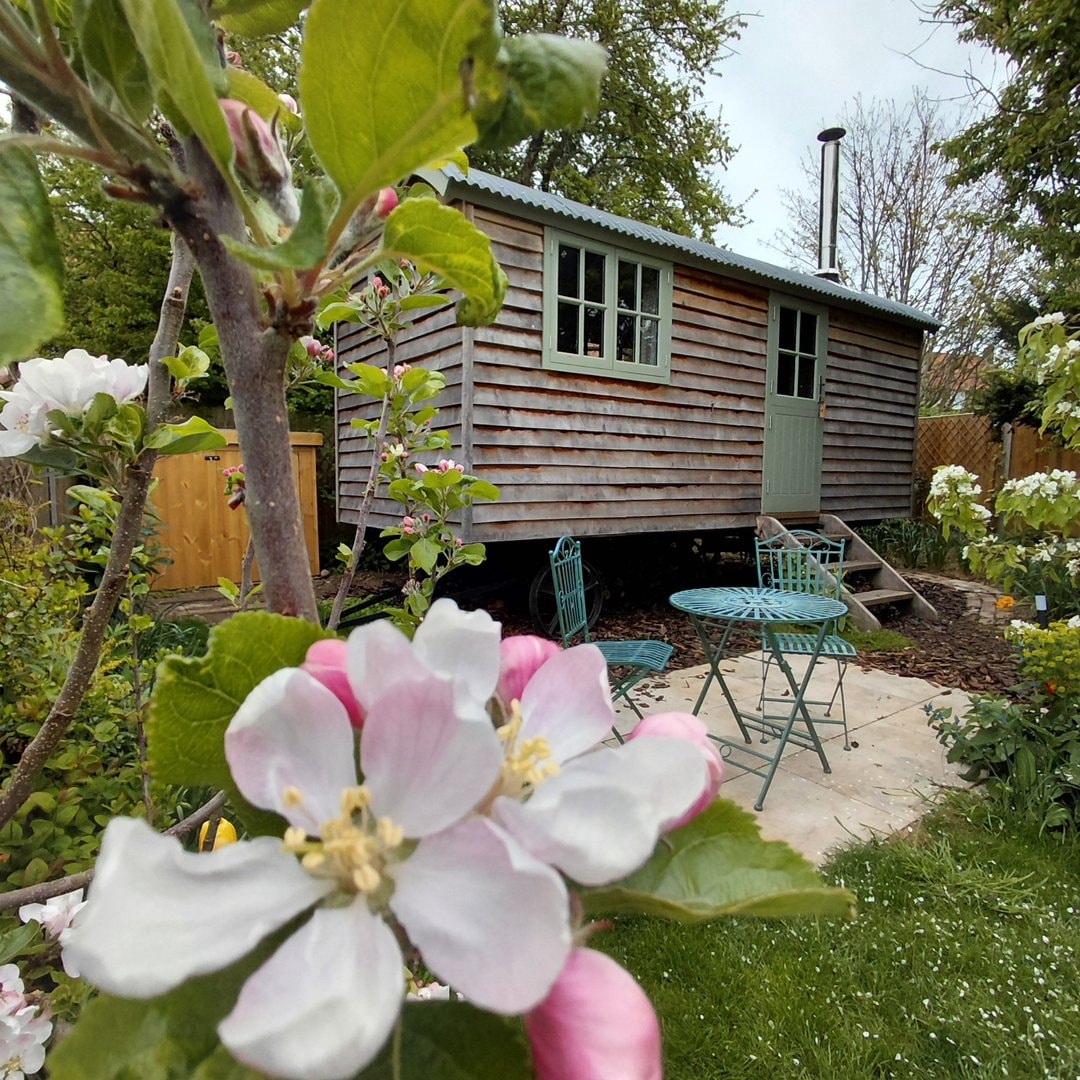 'Charlotte-Rose' is our handcrafted, luxurious Shepherd's hut. Designed and made to provide all you need for your comfort and pleasure. The Shepherd's hut comprises of a double bed, seating area, kitchenette and self-contained shower room. You will be provided with a continental breakfast including croissants, juices and home made jams, coffee, teas, sugar & milk A private hot tub is available for an additional charge, along with use of a BBQ, local produce for a full English, fizz on ice etc