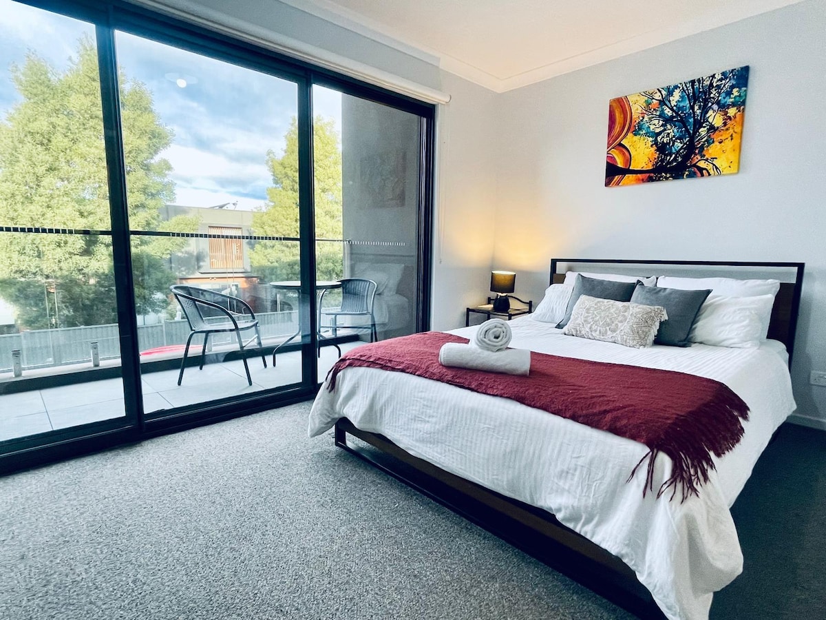 Welcome to Your Perfect Getaway! This peaceful and spacious home offers everything you need for a comfortable stay near the airport. Bedrooms & Bathrooms 2 Spacious Bedrooms – each with a private ensuite bathroom and balcony 2.5 Bathrooms – two ensuites upstairs plus a guest toilet downstairs Parking & Wi-Fi Secure Garage for one car, plus carport and free street parking High-Speed Wi-Fi with a dedicated desk & chair for work or study