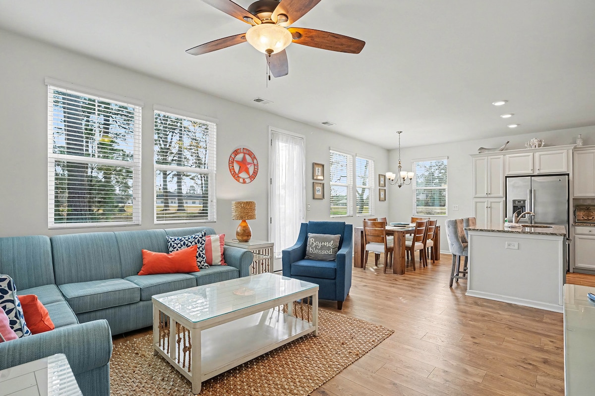 Recently constructed & beautifully decorated, this house is located in the heart of Myrtle Beach on 48th Avenue N. Modern, spacious, and perfectly located for families, golf trips, or weekend getaways. Within walking distance of the rolling green hills of the Myrtlewood Golf Club, it is also a 1 minute drive from the famous Broadway at the Beach (shopping, fun for the kids, rides, & nightlife), & only 5 minutes from the beach! Experience the best of Myrtle Beach from one unbeatable location.