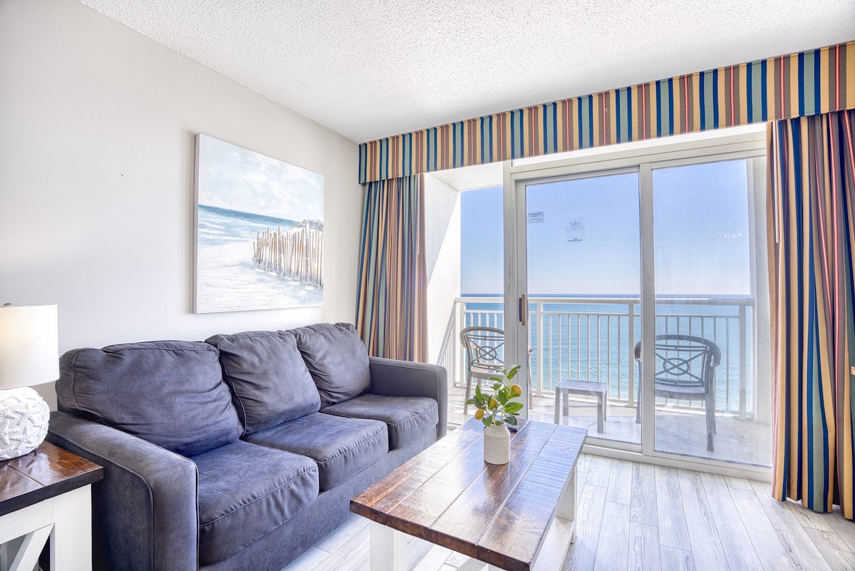 Wake up to breathtaking Atlantic and inland and sunset views from your private balcony's. Fully renovated with modern coastal décor, Smart TV, and comfy beds. Steps to the beach, boardwalk, and SkyWheel. Enjoy lazy rivers, pools, hot tubs, tiki bar & on-site Starbucks. Perfect romantic or small-family getaway in the heart of Myrtle Beach! Free parking & WiFi. Book now!