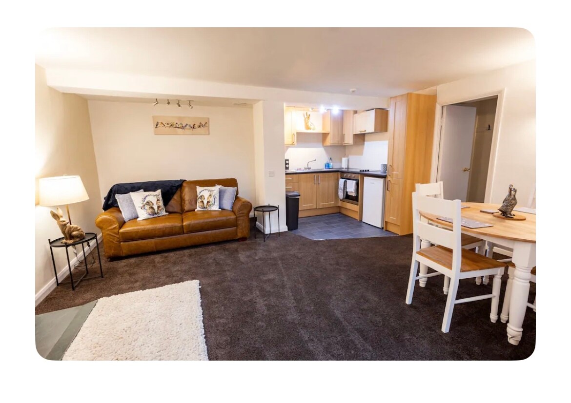 Super quiet, one off space with parking. Close to Lake Windermere, shops and places to eat and drink. Immaculate studio space for 2 people (no children) who need time out of their busy lives to shut off and re-charge. It comprises of an open plan lounge/kitchen/king size bed and bathroom with shower, with sliding doors onto a verandah which overlooks the beautiful running water and the woodland, where if you're lucky you might spot a deer or two. We live nearby if you do need us for anything.