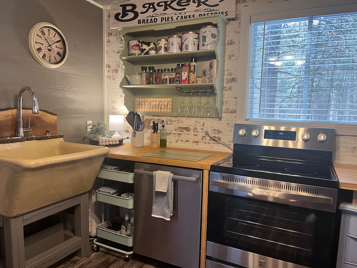 Enjoy a 2-storey in Brockville’s historic district (3 blocks from Centeen Park & river). New kitchen & flooring throughout in 2020. Gas fireplace stove for heat. Living room sofa converts to a queen bed. Wall mounted TV in living room. Stairs are short but quite steep! Loft bedroom with TV & bath w/small clawfoot tub. Shower is in tub & tough for the tall! Queen size bed, dresser & hutch with towels/bedding. Free private Laneway parking in front. Front deck w/table&chairs. A/C window units.