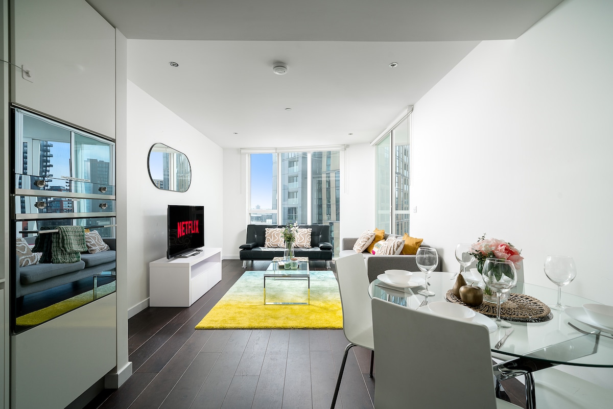 This stylish two-bedroom, two-bathroom penthouse features a private balcony, offering stunning views over London. Located in the vibrant and sought-after Clapham area, it’s perfect for guests looking to relax while enjoying everything the city has to offer. Whether you're in town for business or simply need a comfortable home-away-from-home, this penthouse provides the ideal base.