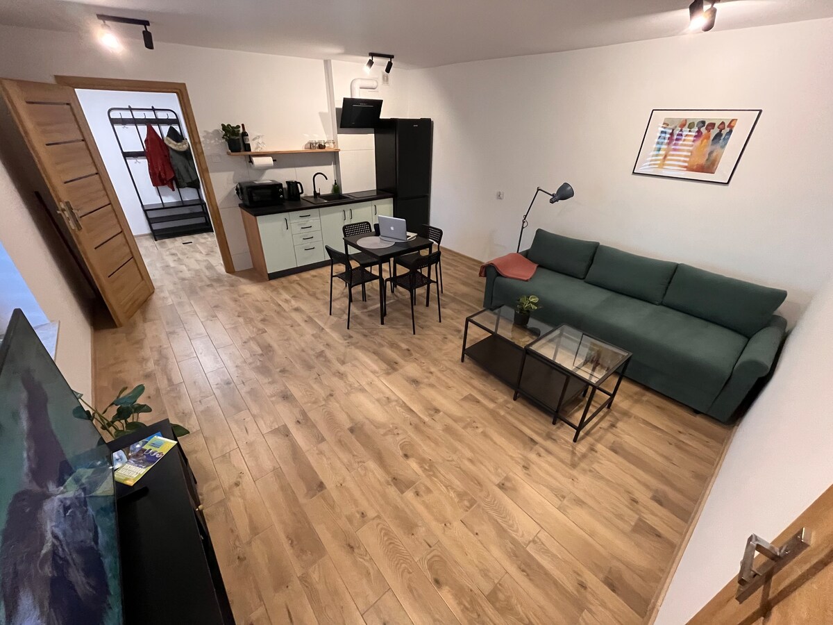 Gra słów "for" (dla) i "rest" (odpoczynku) oraz ich połączenie "forest" (las) idealnie oddają charakter apartamentu. Otoczony lasem, w bliskiej odległości od jeziora - sprzyja chwilom we dwoje lub z rodziną, sprzyja odpoczynkowi😊 Apartament dysponuje wszystkim, co niezbędne, aby poczuć się jak w domu. W pełni wyposażona kuchnia, TV55' + szybkie WiFi i Netflix. Akceptujemy grzeczne zwierzęta:-) Wystawiamy faktury. Zapisz apartament na swojej liście 🖤 życzeń, aby znaleźć nas następnym razem 😊