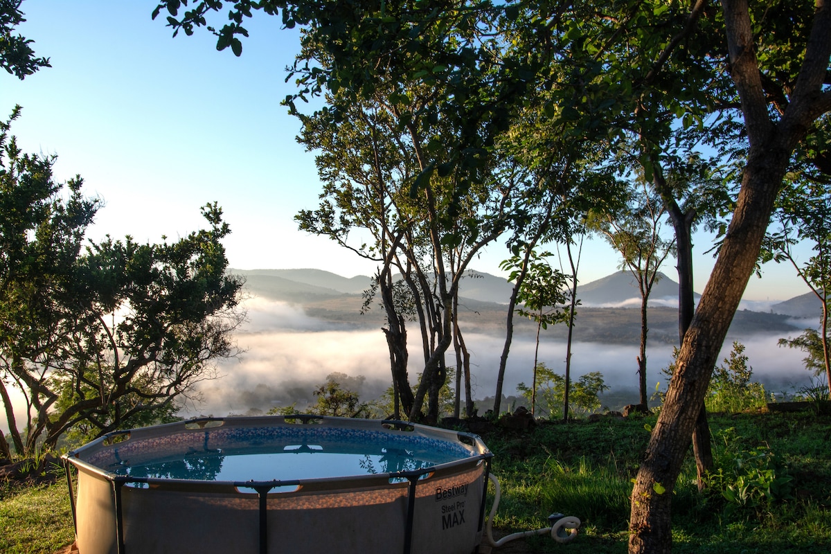 Escape to this off-grid retreat powered by solar energy and surrounded by lush greenery. Relax by the shared pool, enjoy a game of pool on the patio, or use the braai for outdoor dining. The open-plan kitchen includes a gas stove, and the living area offers cozy seating and a smart TV with high-speed WiFi. With sleek bedrooms and modern bathrooms, this eco-friendly getaway is perfect for couples or remote workers seeking tranquility and modern comforts in a peaceful, stylish setting.