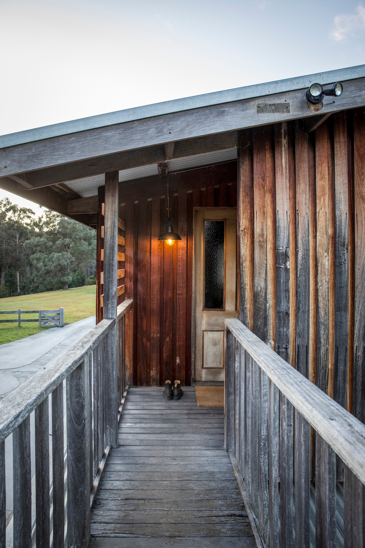 Find peace & tranquility in this sweet & stylish space with views of a lake, forest & farmland. Experience solitude & privacy with only a small distant cottage in sight. Swim in the river, see the stars at night, Roos at dusk & dawn and a few cows. It is off-grid with solar power and water must be carted in. For the hot days there is an air cooler ( no Aircon), it always cools down at night. No heater inside but it is never too cold in winter. Firewood provided. Cooking on bbq outside! 😊