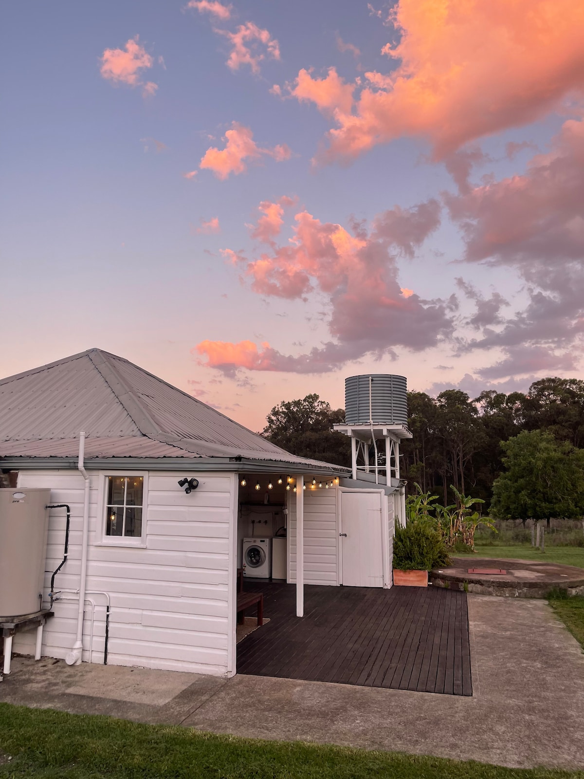 Cosy and clean farm stay with friendly animals, luxury outdoor bath and firepit. Convenient to shops and cafes. 90 minutes from Sydney. 45 mins from Newcastle airport. Wake up to grazing cows, goats, chooks, horses & wallabies. Pat, feed and get up-close. Private luxury with outdoor bath, fire-pit & romantic lighting. Explore the farm & extensive walking trails Fresh eggs, crusty sourdough bread & stocked pantry Comfy double bed, heat & AC Stroll to cafe & shops nearby Book NOW!