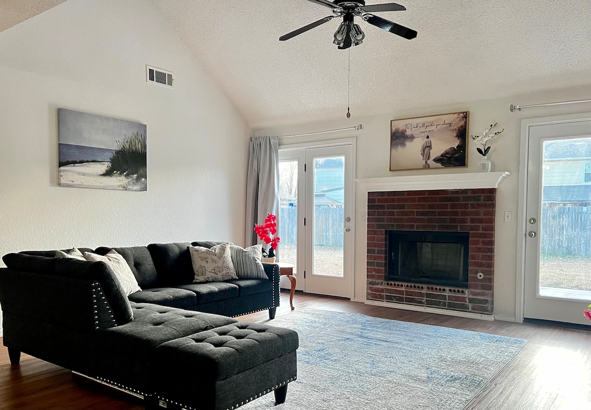 This listing is not one but TWO homes, perfect for your large group! This welcoming retreat has a newly built-attached addition which hosts 5 bedrooms (holding 2 King, 2 Queen, 2 Twin beds, and access to a Queen size air mattress), 3 full bathrooms, 2 open living spaces, 2 fully stocked kitchens, 2 fenced yards, Weber’s grills, and a fire pit ready for S’mores! Convenient access to Highway 75, less than 10 minutes from shopping and dining in Tulsa Hills Shopping center.