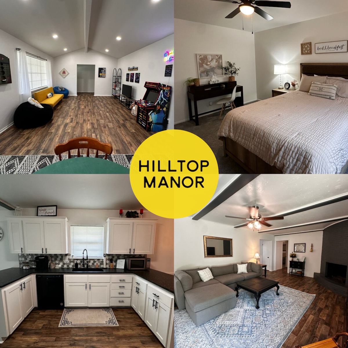 ~This unique place is perfect for entertaining, or just an esthetically pleasing, & peaceful place to enjoy while in Tulsa! ~Outdoor kitchen/grill, firepit, patio w/ furniture, turf & string lights ~ 86" smart tv in living room w/ large sectional ~3 bedrooms, 2 bath, 5 beds ~Sleeps 9 comfortably ~Master: 1 king, private full bath, & walk-in closet, smart TV ~Bedroom 2: Queen bed, 65" smart tv & walk-in closet ~Bedroom 3: 1 twin + bunk beds w/ 2 full beds & 50" smart tv ~ highchair & pack & play