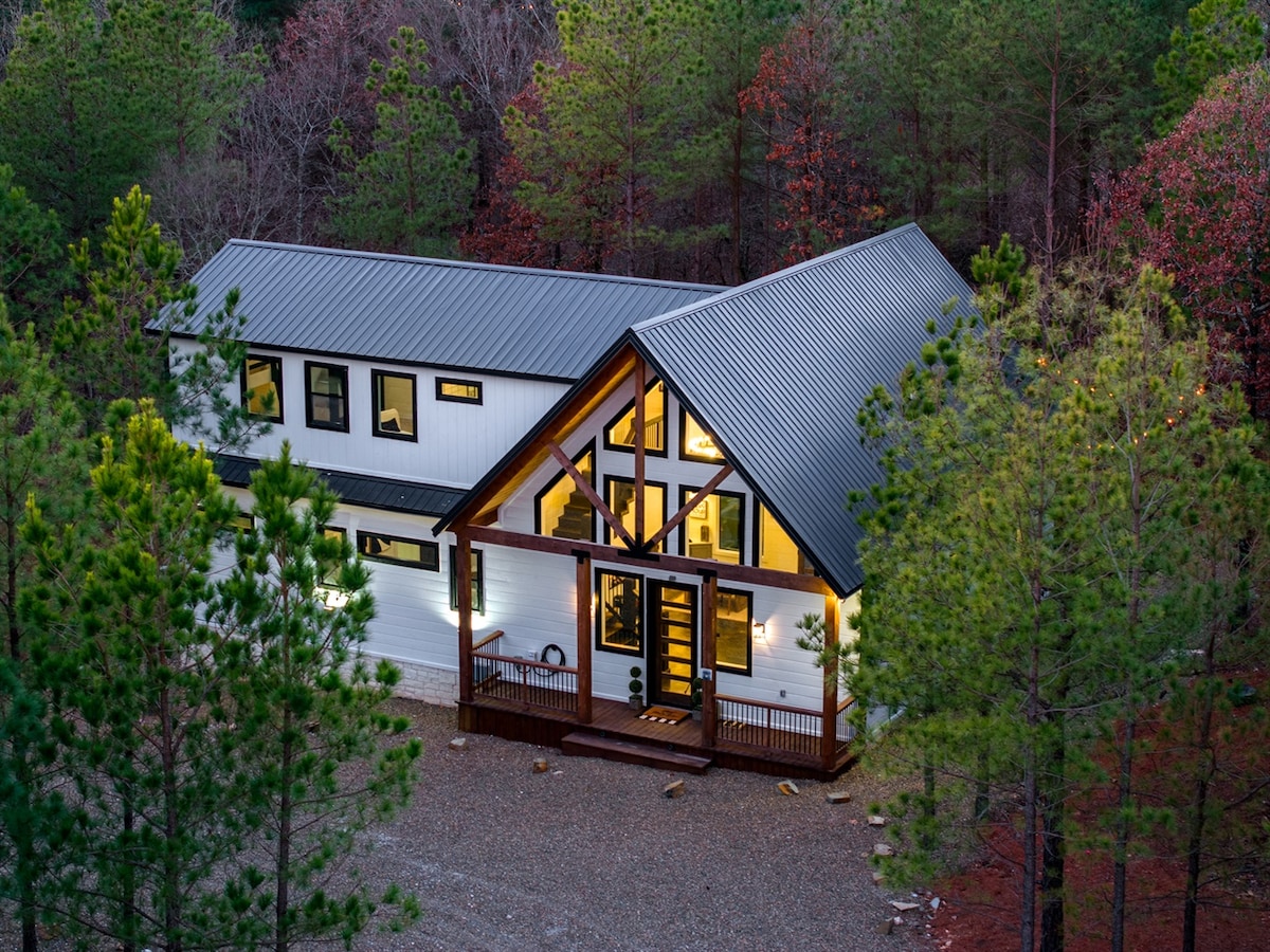 Where tranquility meets luxury. Discover the allure of our secluded paradise where every moment is crafted to rejuvenate, reconnect, and inspire. ~2 miles to Choctaw Landing Casino ~6 miles to Broken Bow Lake Indulge in top-tier amenities such as: • Barrel Sauna • Private Hot Tub • Cold Plunge • Fire Pit • Spa Like Bathroom • Gourmet Kitchen • Luxurious Design • High Speed Wifi • Premium Pillows, Linens, and Sheets • SMART TV's in every room • Outdoor BBQ Grill • Outdoor Fireplace