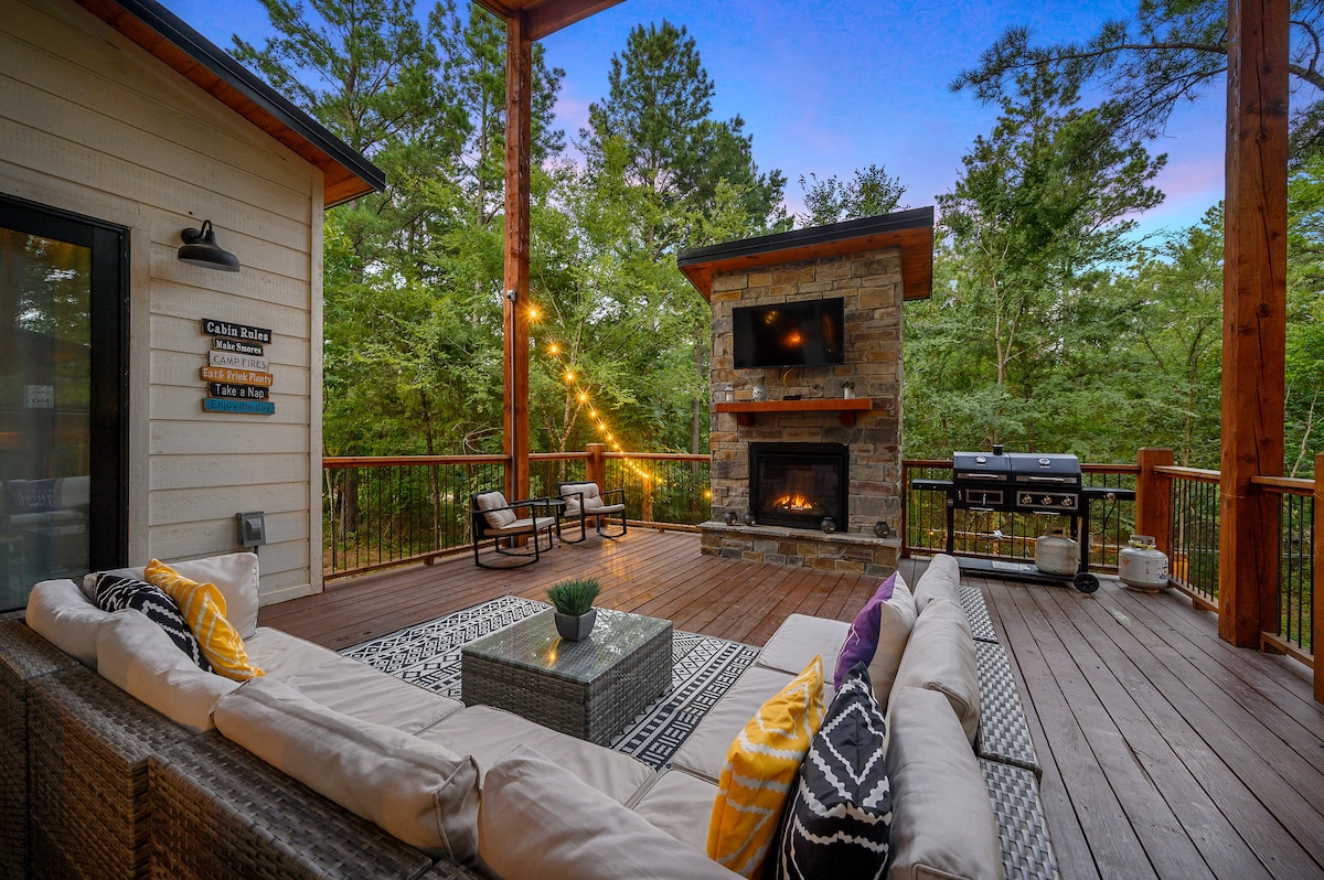 “Luxury is not about things — it’s about moments that slow time.” A modern, luxury cabin perched among the pines and reached by fully paved roads in the heart of Hochatown. Enjoy a private hot tub, indoor and outdoor fireplaces, and tall windows framing peaceful forest views. Designed for couples seeking romance and relaxation, yet close to Broken Bow Lake, Beavers Bend trails, wineries, breweries, and dining. A quiet retreat where comfort, style, and nature come together.