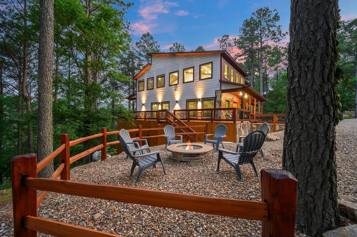 • "Ritz-Carlton of the Woods" - Secluded Broken Bow Forest Escape • Spa Rain Showers & Deep Soaking Tubs "Better Than 5-Star Hotels" • Hot Tub Under Stars with Daily Wildlife (Deer, Armadillos, Bats) • 2+ Private Acres "Like Stepping Into a Dream" • Fire Pit, Gas Grill & Complimentary S'mores Kit • 2 King Suites with "Sleep Like Babies" Comfort • Gourmet Kitchen & Premium Appliances • EV Charging • Pet Friendly • Sleeps 4-8