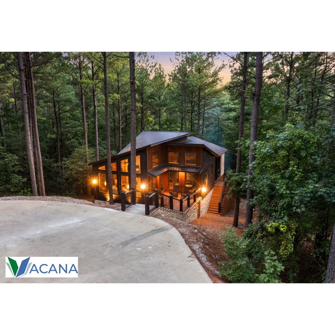 Introducing The Onyx Escape in Broken Bow Oklahoma! A true Honeymoon cabin experience. Discover the unparalleled serenity, nestled amidst the picturesque Ouachita National Forest. This spacious 1100 square ft. cabin boasts contemporary design and luxurious amenities to ensure your utmost relaxation and rejuvenation. The cabin showcases a vast outdoor living space surrounded by towering pine trees. Soak in the hot tub or cozy up by the fire while taking in the nature that surrounds you.