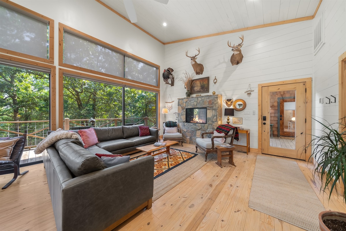 Retreat to Treetop Reflections cabin, where romance meets nature's embrace. Nestled amidst towering trees, this cozy sanctuary offers breathtaking window views, inviting you to immerse in tranquility and indulge in intimate moments. Perfect for couples seeking a romantic getaway, our cabin is a haven of serenity, surrounded by a majestic forest.